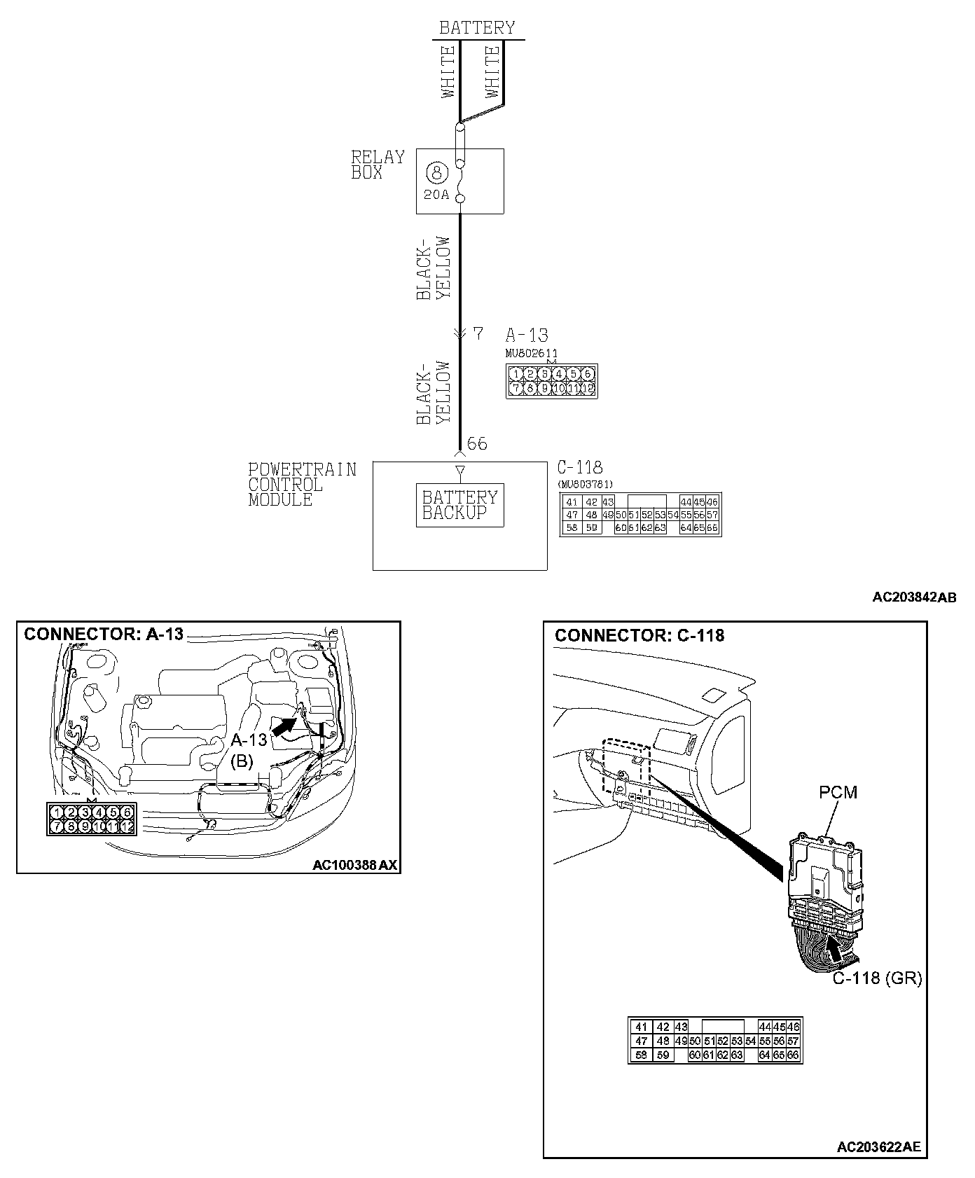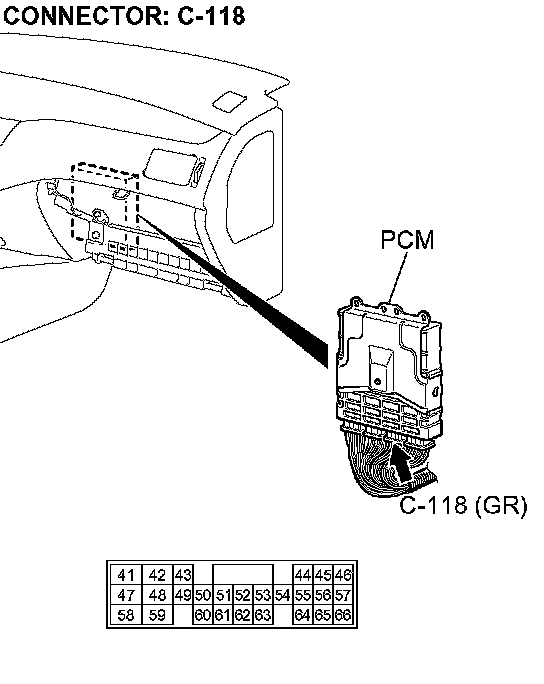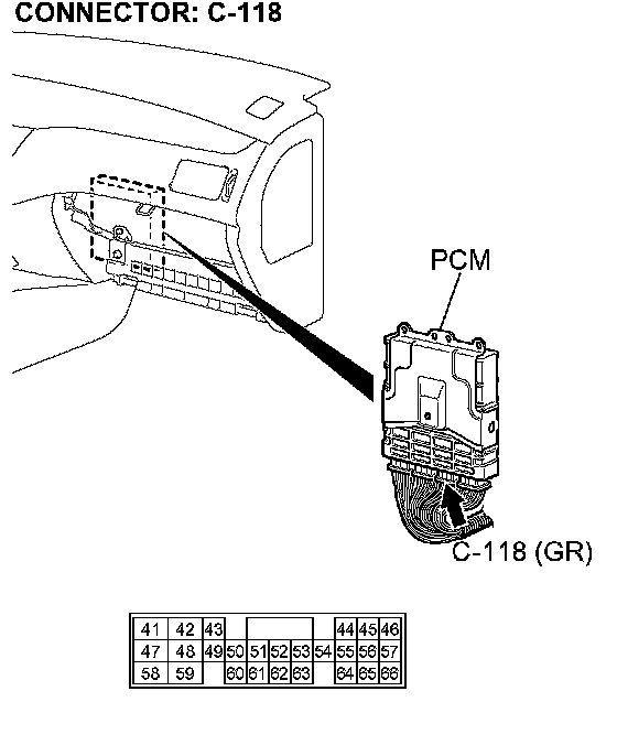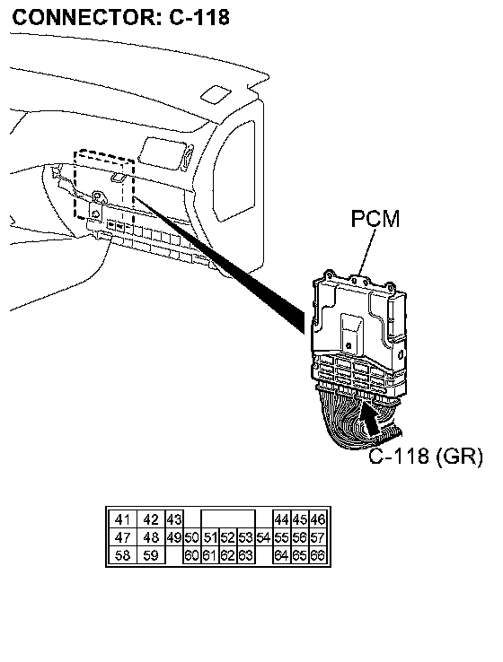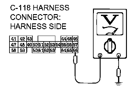STEP 4. Check the harness for open circuit between PCM connector C-118 terminal 66 and battery.