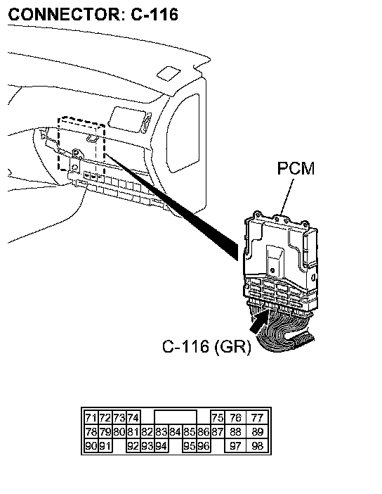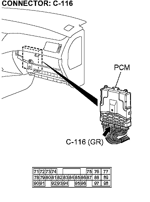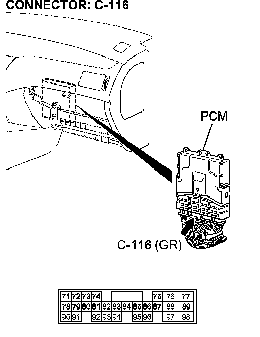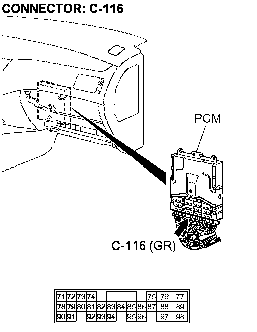 STEP 4. Check PCM connector C-116 for looser, corroded or damaged terminals, or terminals pushed back in the connector.