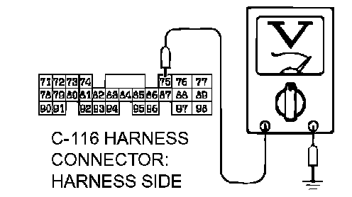 STEP 3. Measure the signal voltage at PCM connector 116 by backprobing.