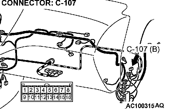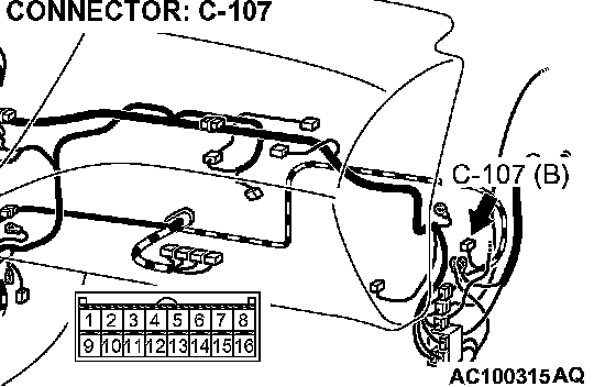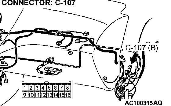 STEP 7. Check auto-cruise control-ECU connector C-107 at for looser, corroded or damaged terminals, or terminals pushed back in the connector.