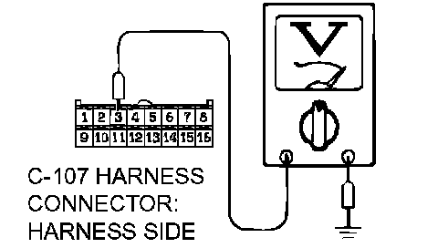 STEP 6. Measure the signal voltage at auto-cruise control ECU connector C-107 by backprobing.