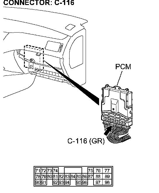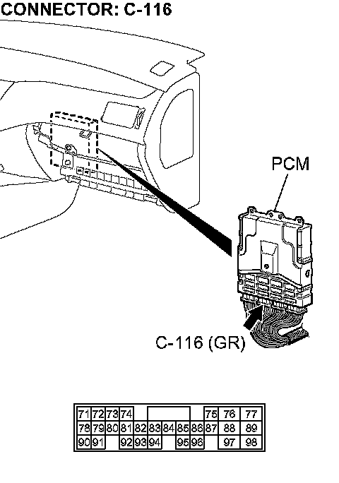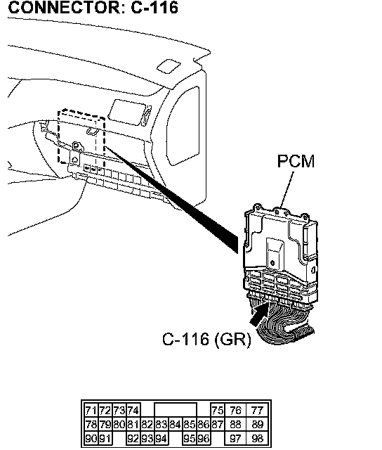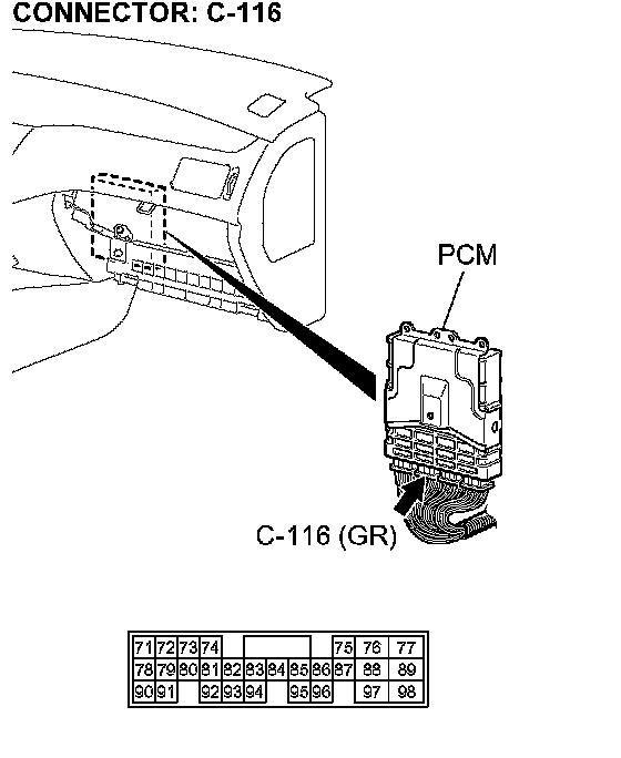 STEP 4. Check PCM connector C-116 for loose, corroded or damaged terminals, or terminals pushed back in the connector.