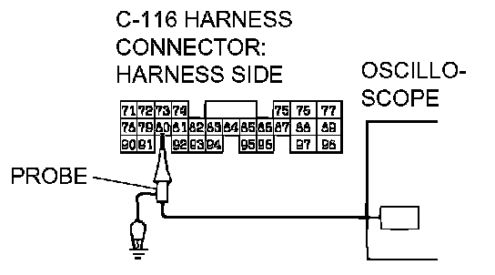 2. Connect an oscilloscope probe to PCM connector C-116 terminal 80 by backprobing.