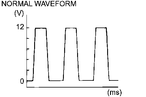 ^ The vehicle speed signal waveform should show a pattern similar to the illustration. The maximum value should be 11 volts and more and the minimum value 0.6 volt and less. The output waveform should not contain electrical noise