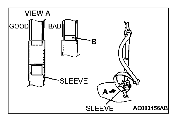 Check that the B section (red) of the label attached to the outer seat belt is not exposed from the outer seat belt sleeve. If it is exposed, replace the outer seat belt.