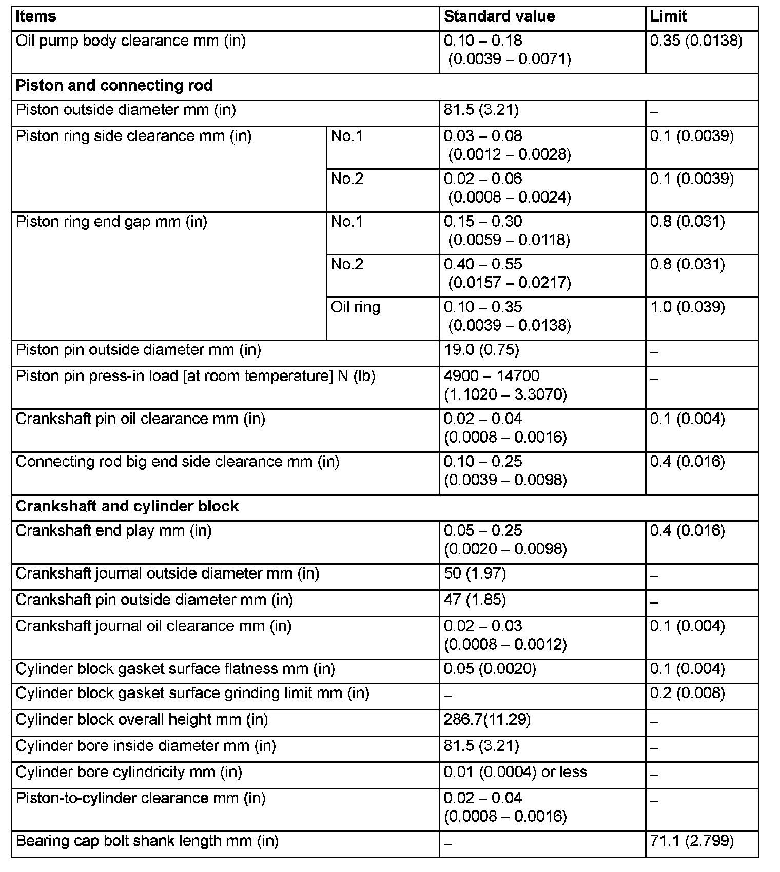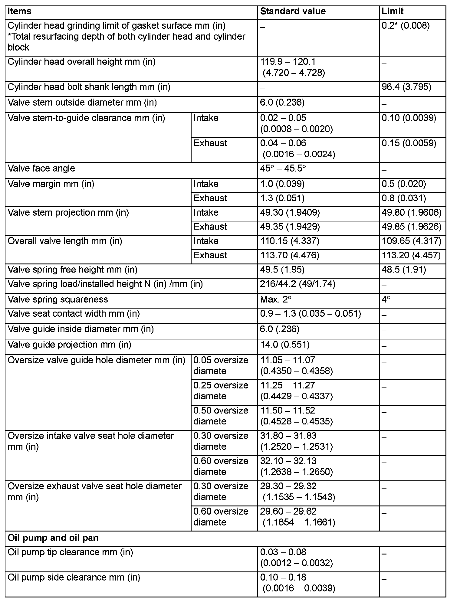 Engine-Overhaul Specifications