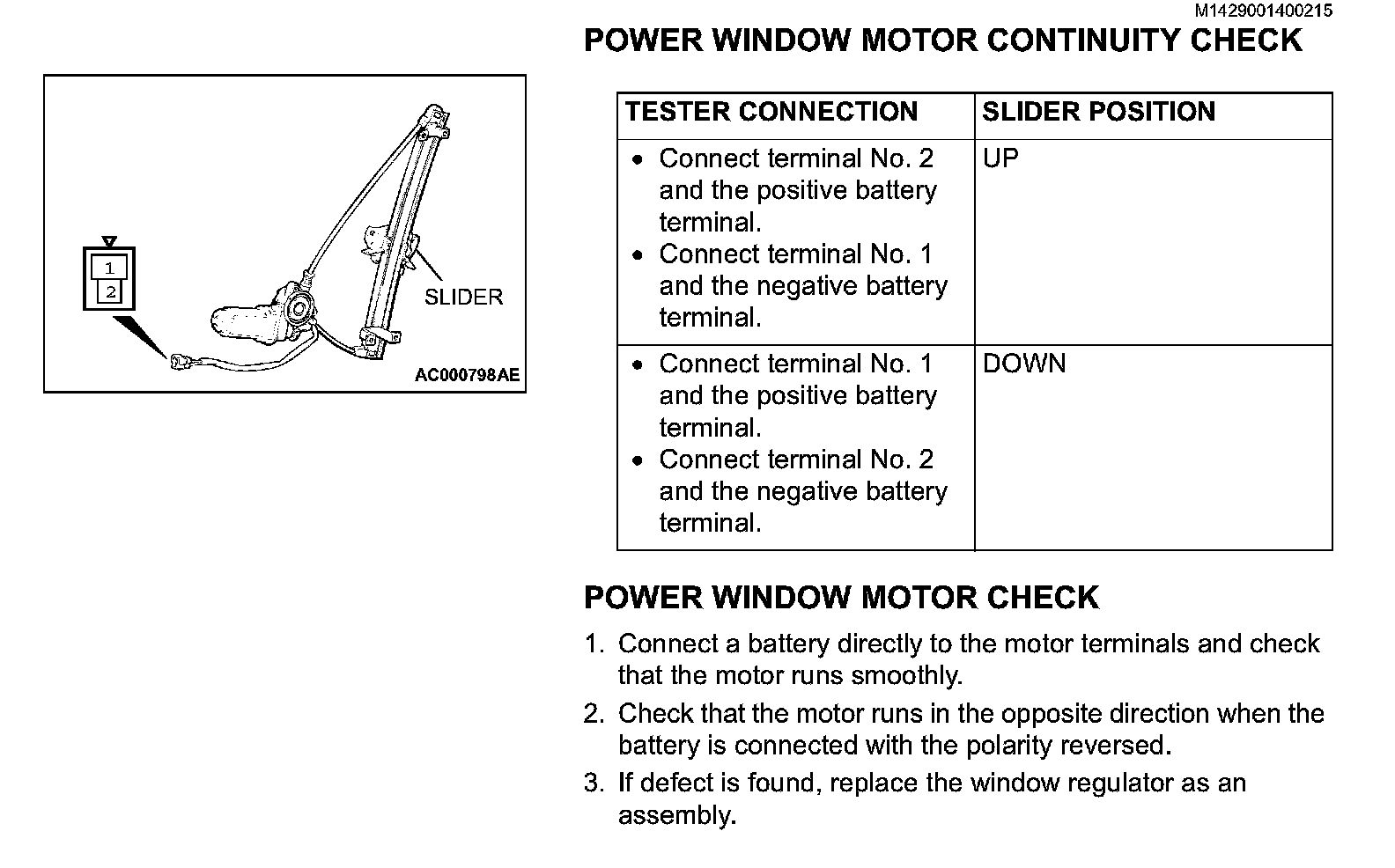 Power Window Motor Continuity Check / Power Window Motor Check:
