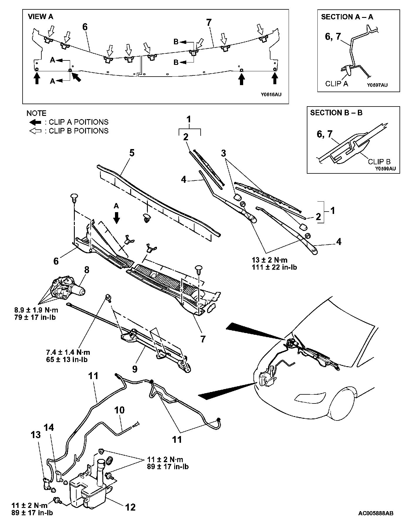 WINDSHIELD WIPER AND WASHERREMOVAL AND INSTALLATION