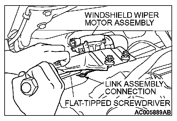 2. Use the fiat-tipped screwdriver to disengage the link between the windshield wiper motor assembly and the link assembly to remove the windshield wiper motor assembly.