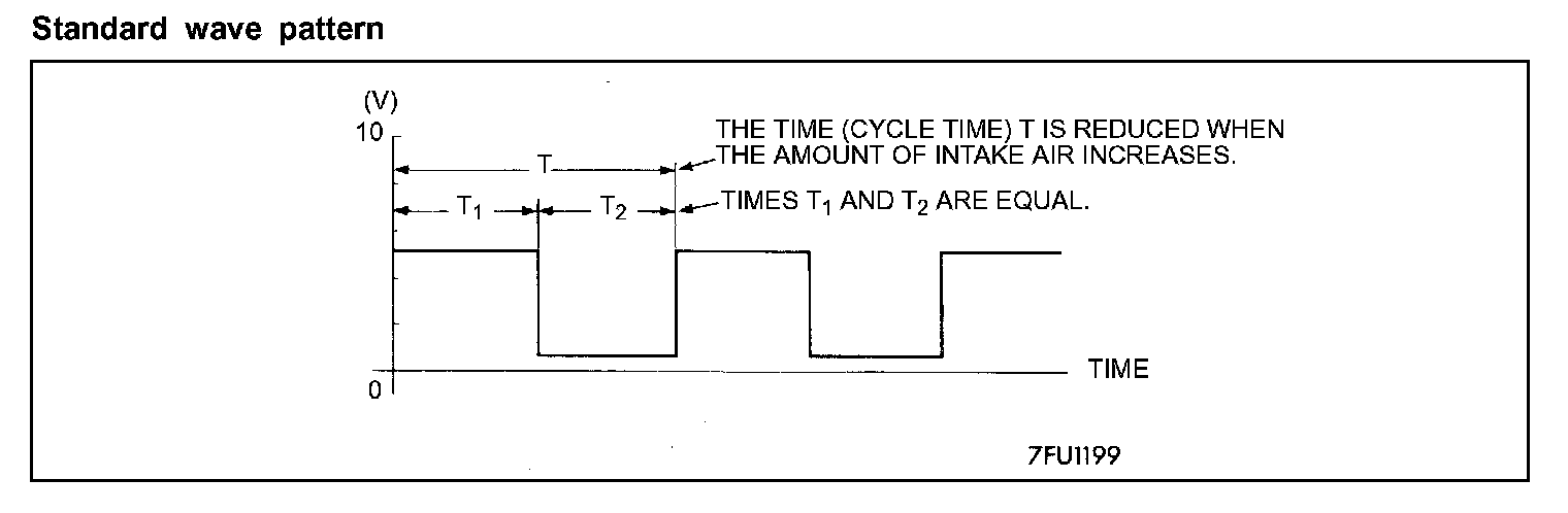 Unstable wave pattern with non-uniform frequency. However, when an ignition leak occurs during acceleration, the wave pattern will be distorted temporarily, even if the volume air flow sensor is normal.