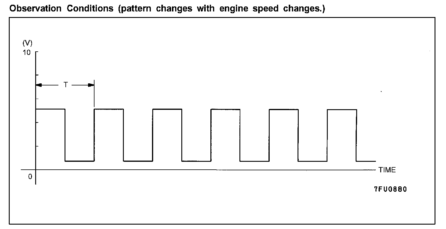 Check to be sure that cycle time T becomes shorter and the frequency increases when the engine speed is increased.