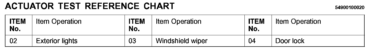Actuator Test Reference Chart