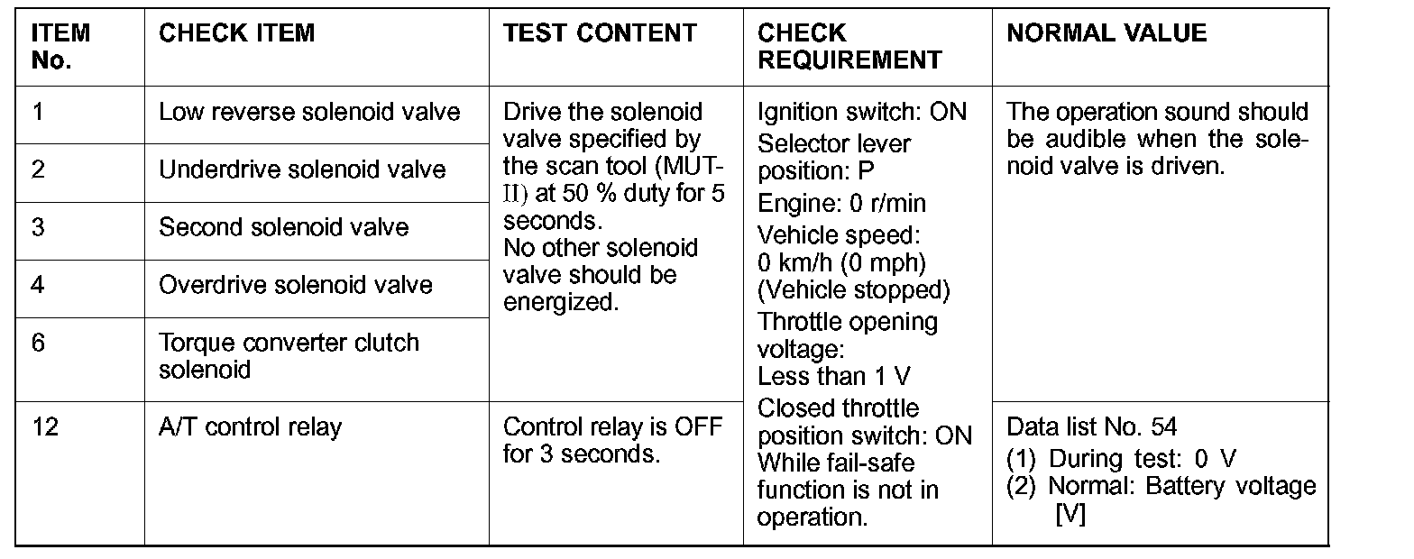 Actuator Test Reference Table