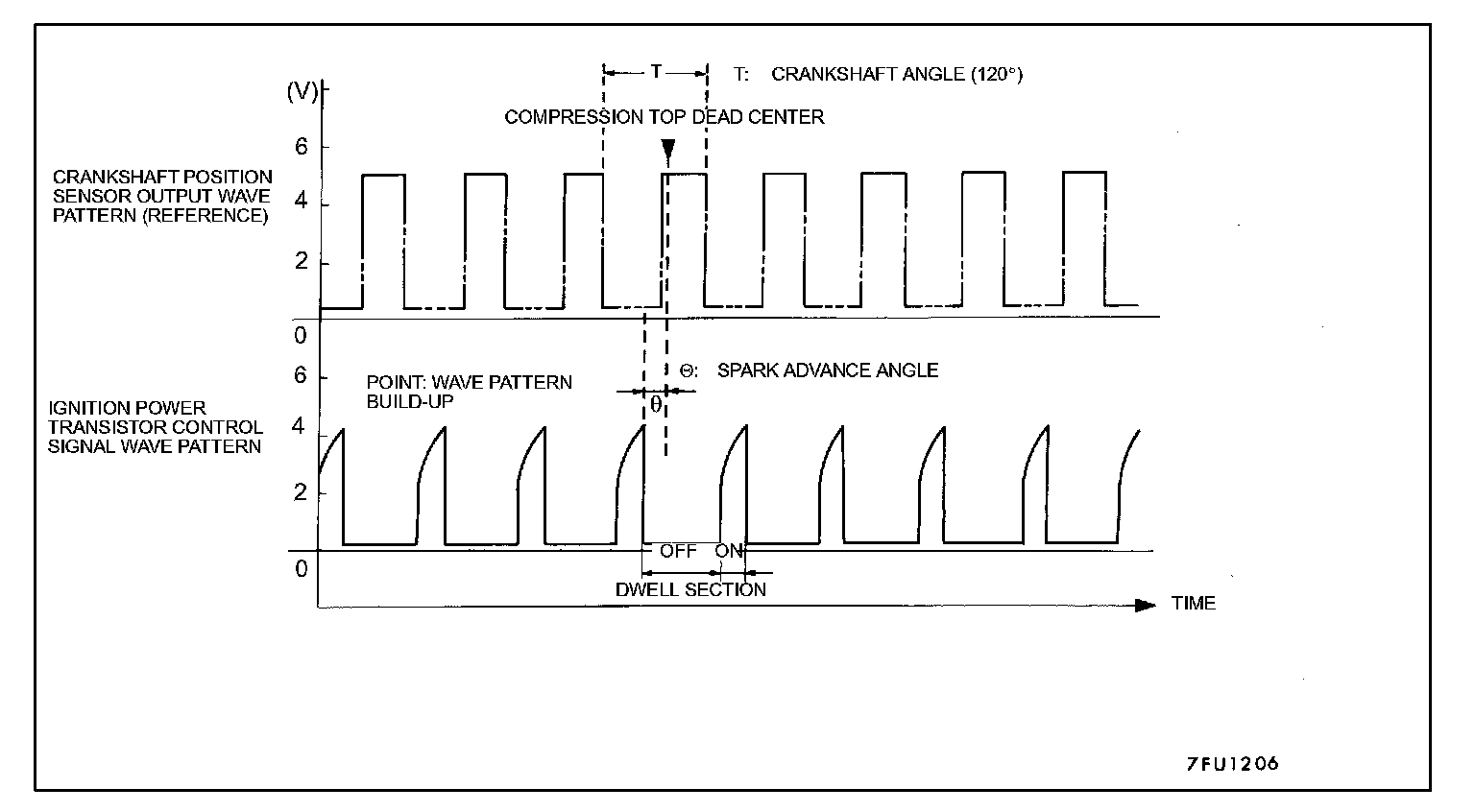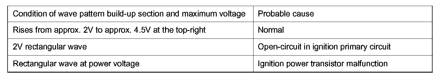 Point: Condition of wave pattern build-up section and maximum voltage (Refer to abnormal wave pattern examples 1 and 2.)