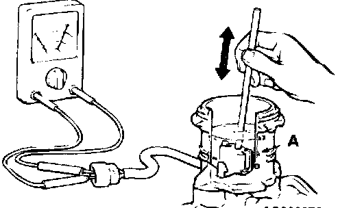 BRAKE FLUID LEVEL SENSOR CHECKThe brake fluid level sensor is in good condition if there is no continuity when the float surface is above "A" and if there is continuity when the float surface is below "A."