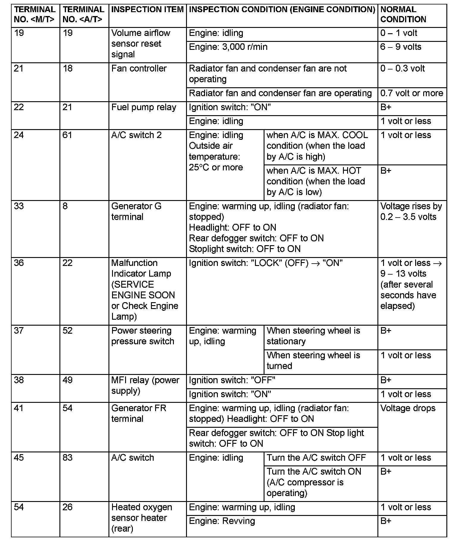 ECM <M/T> Or PCM <A/T> Connector Terminal Arrangement Part 4: