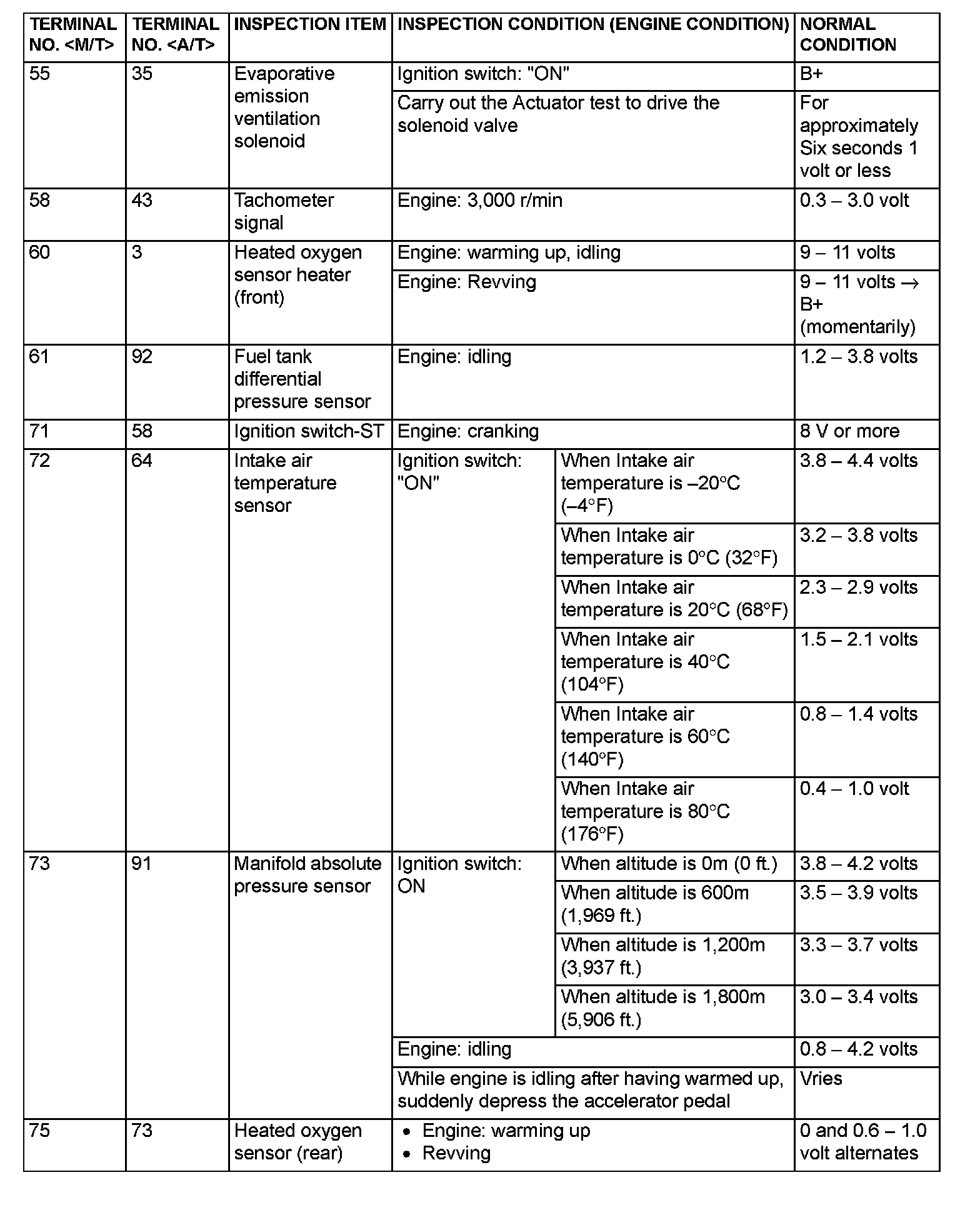 ECM <M/T> Or PCM <A/T> Connector Terminal Arrangement Part 3: