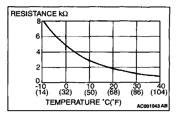 THERMISTOR SENSOR INSPECTIONWhen the resistance between the sensor terminals is measured under two or more temperature conditions, the resistance should approximately satisfy the illustrated values.