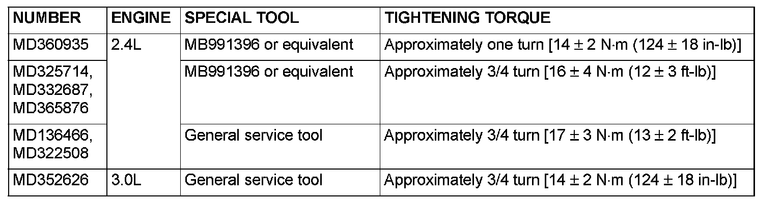 ^ MB991396 (When using the oil filter of MD360935, MD325717, MD332687 and MD365876): Oil Filter Wrench