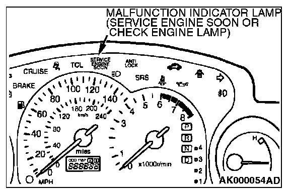 MALFUNCTION INDICATOR LAMP (SERVICE ENGINE SOON OR CHECK ENGINE LAMP)Among the on-board diagnostic items, a Malfunction Indicator Lamp (SERVICE ENGINE SOON or Check Engine Lamp) illuminates to notify the driver of an emission control malfunction. However, when an irregular signal returns to normal and the engine control module (ECM)