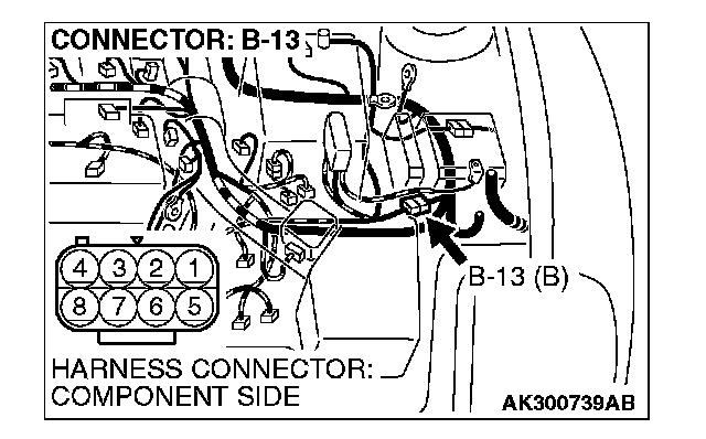 STEP 1. Measure the voltage at generator intermediate connector B-13 by backprobing.