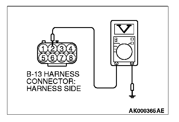 3. Measure the voltage between terminal No. 2 and ground by backprobing.