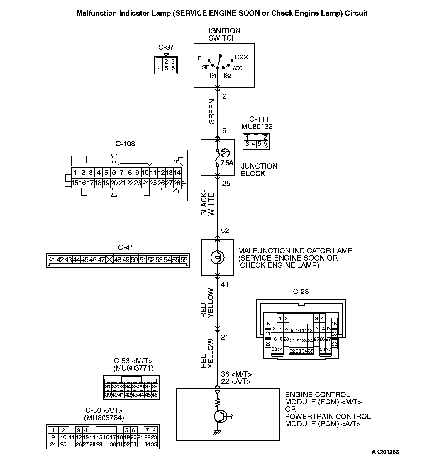 - The malfunction indicator lamp (SERVICE ENGINE SOON or Check Engine Lamp) power is supplied from the ignition switch.