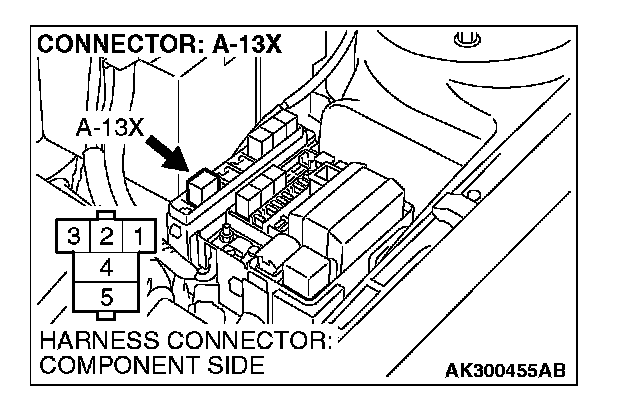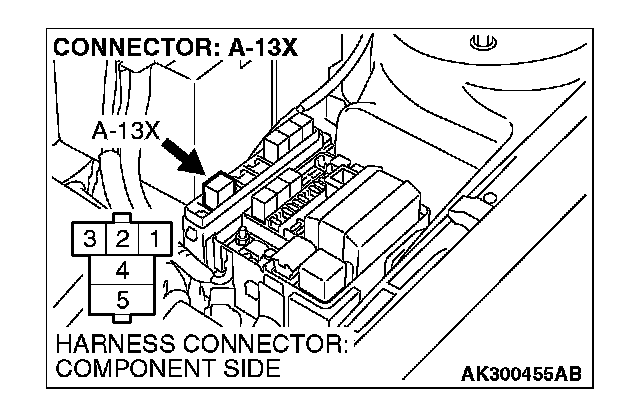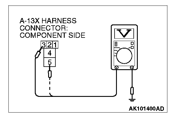 STEP 3. Measure the power supply voltage at starter relay connector A-13X.