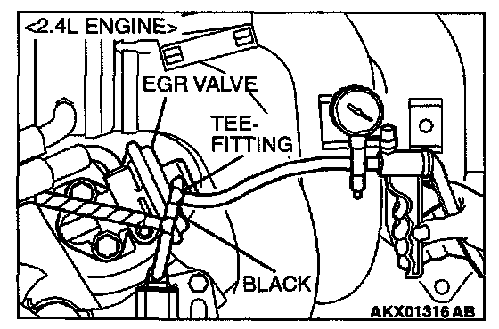 EGR SYSTEM CHECK1. Disconnect the vacuum hose (black) from the EGR valve, and then connect a hand vacuum pump via the Tee-fitting.