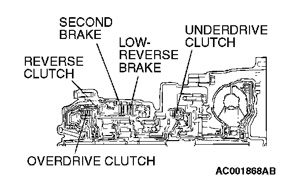 2) Blow 108 kPa (15 psi) compressed air into the each brake oil orifice and clutch oil orifice of the transaxle case, and check if each brake and each clutch piston move and air pressure is maintained.