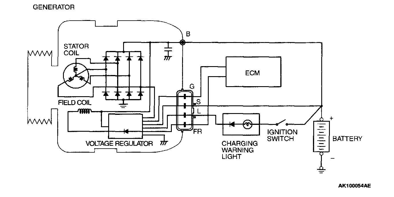 GENERAL DESCRIPTIONThe charging system charges the battery with the generator output to keep the battery charged at a constant level during varying electrical load.