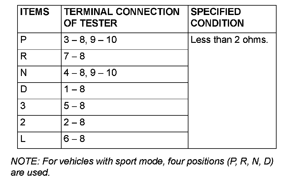 Transmission Range Switch Check
