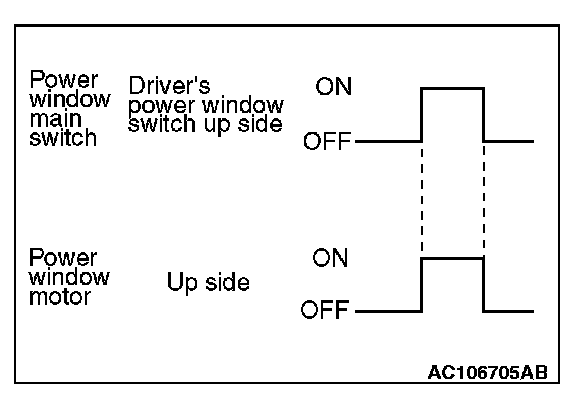 When the driver's power window switch on the power window main switch is pulled up, the system energizes its respective power window motor, and then driver's window glass rises.