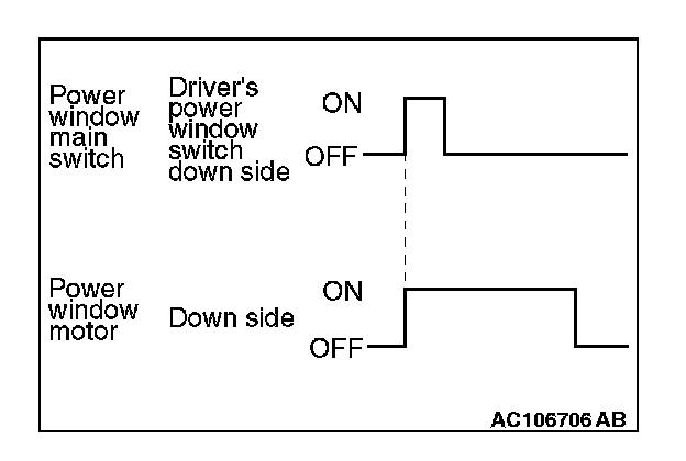 When the driver's power window switch on the power window main switch is pushed down, the system energizes its respective power window motor, and then driver's window glass lowers.