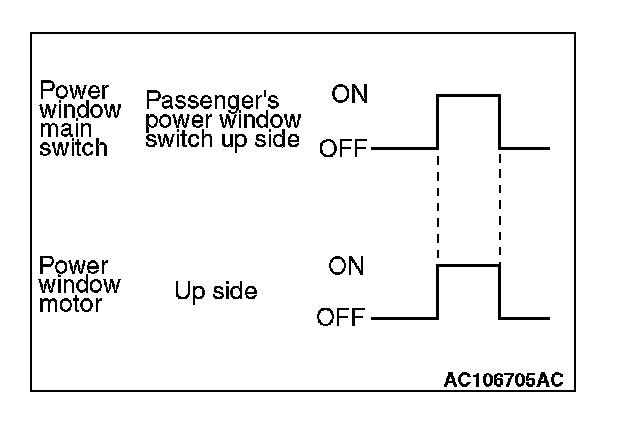 When the passenger's power window switch on the power window main switch is pulled up, the system energizes its respective power window motor, and then passenger's window glass rises.