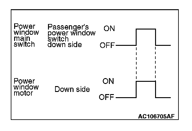 When the passenger's power window switch on the power window main switch is pushed down, the system energizes its respective power window motor, and then passenger's window glass lowers.