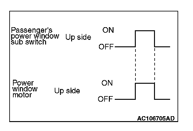 When the power window sub switch is pulled up, the system energizes its respective power window motor, and then passenger's window glass rises.