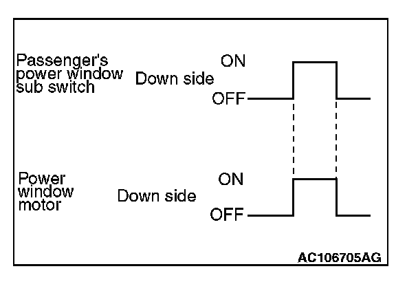 When the power window sub switch is pushed down, the system energizes its respective power window motor, and then passenger's window glass lowers.