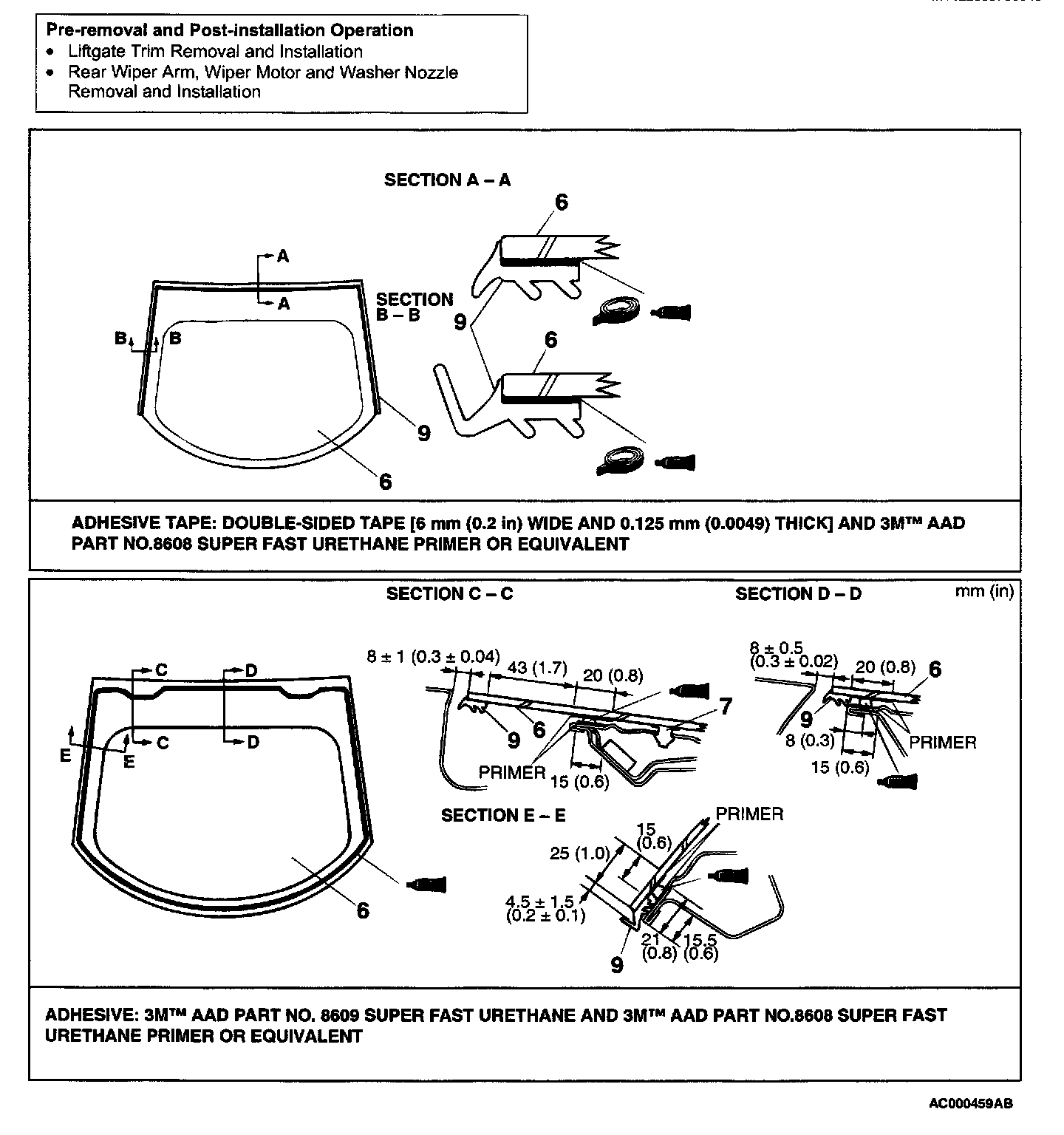 ]]A[[ WINDOW SPACER/GLASS STOPPER/LIFTGATE WINDOW GLASS INSTALLATION