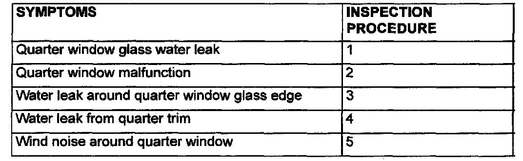 Quarter Window Glass and Regulator Assembly Diagnosis: