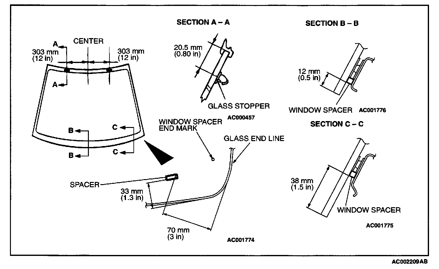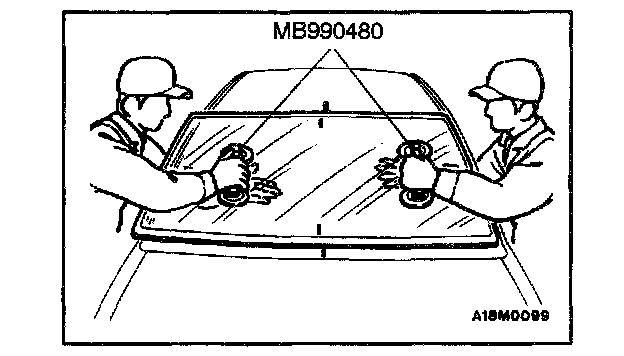 1. When replacing the windshield, temporarily set the windshield against the body, and place a mating mark on the windshield and body.