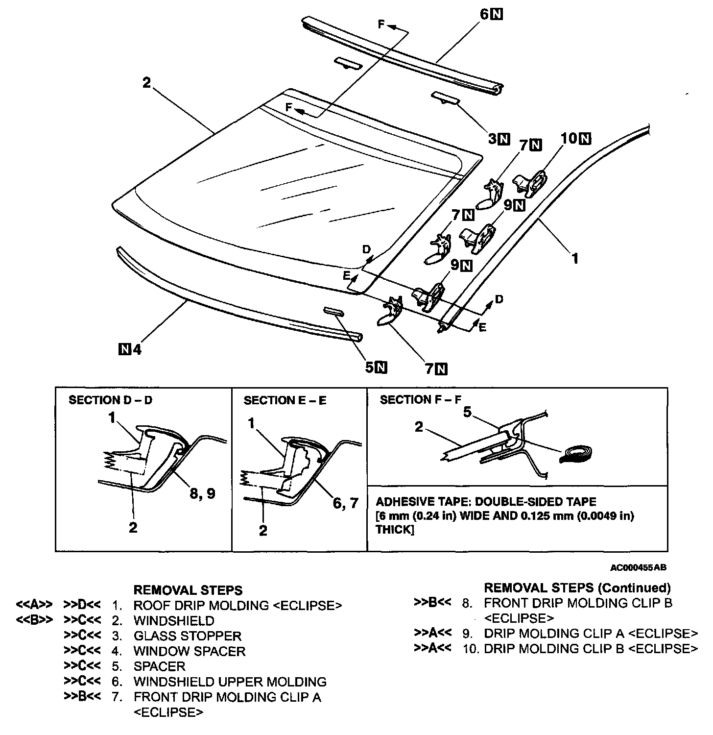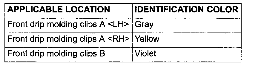 >>B<< FRONT DRIP MOLDING CLIP A/FRONT DRIP MOLDING CLIP B INSTALLATION