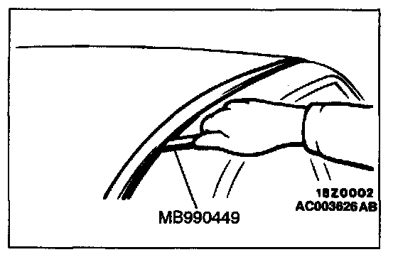CAUTION: Putting glass adhesive knife too deeply into windshield adhesive may damage windshield.