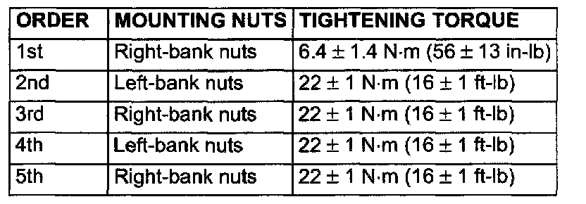 2. Tighten the intake manifold mounting nuts by the following procedure.