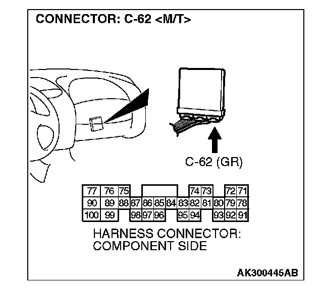 STEP 2. Check for open circuit, short circuit to ground and harness damage between data link connector C-29 (terminal No. 7) and ECM connector C-62 (terminal No. 85)