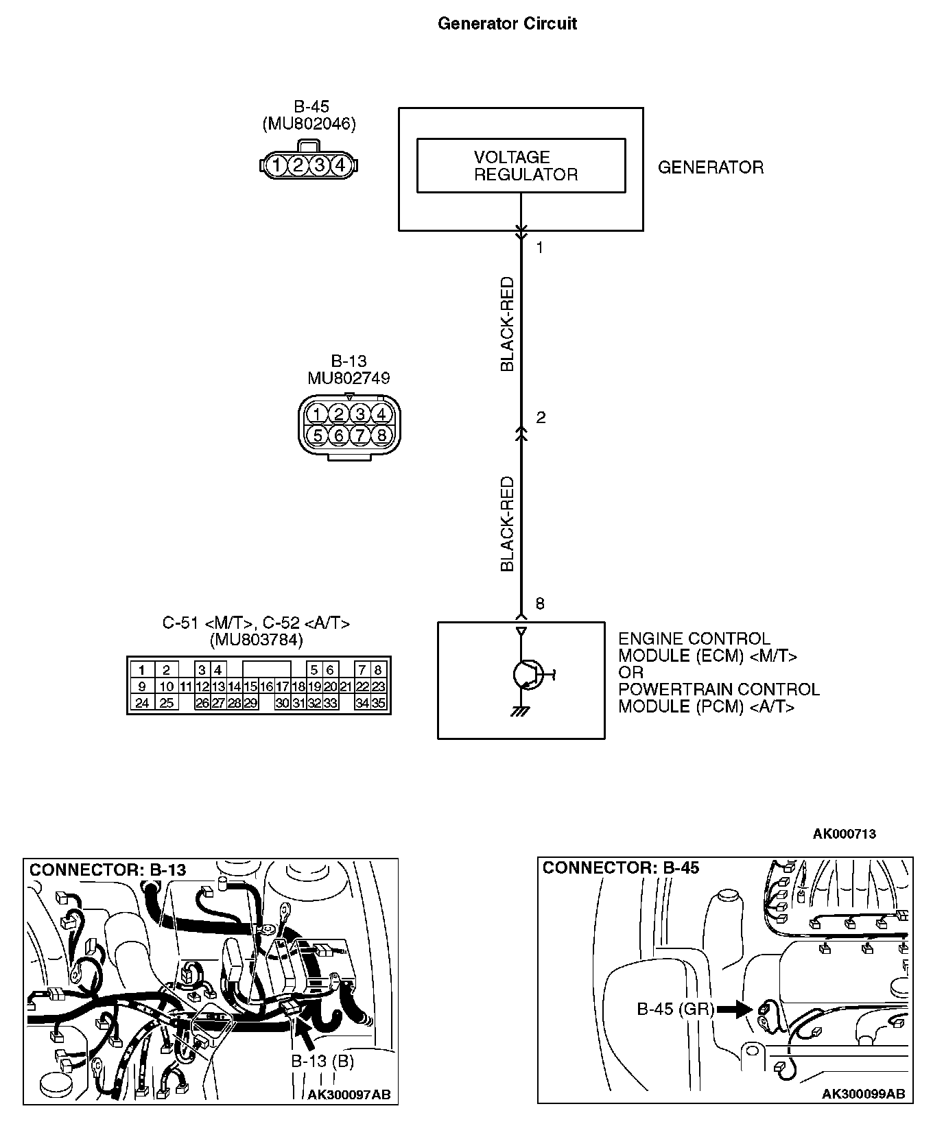 STEP 1. Check the voltage at generator connector B-45 by backprobing.
