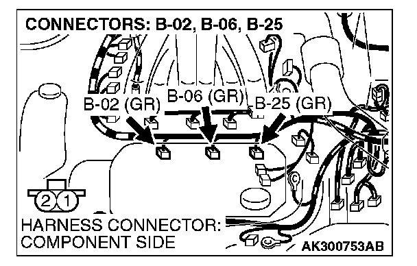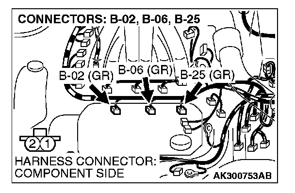 STEP 11. Check connector B-02, B-06, B-25 at the left bank injector for damage.
