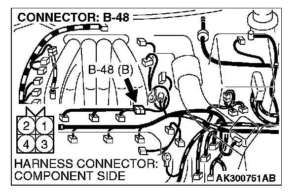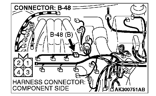 STEP 10. Check connector B-48 at the injector intermediate connector for damage.
