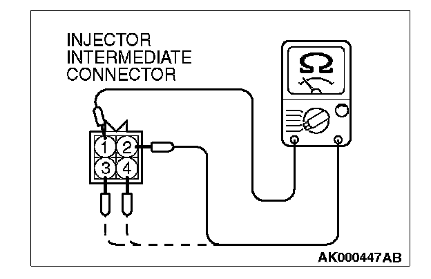 b. Measure the resistance between terminals No. 1 and No. 3 when measuring No. 3 cylinder injector.