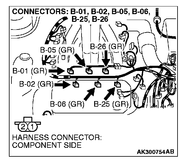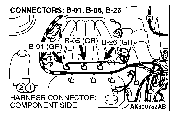 STEP 9. Check connector B-01 or B-05 or B-26 at right bank injector for damage.